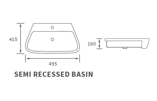 Upgrade your bathroom with the stylish Amara 495x415mm 1TH Semi Recessed Basin - White, designed to combine practicality with a sleek, modern finis...