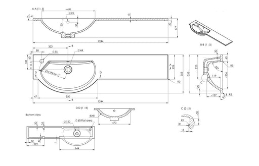 Elevate your bathroom with the 1244mm Standard Round One-Piece Basin & Overflow Ring – Right Hand, White, combining sleek design with practical...