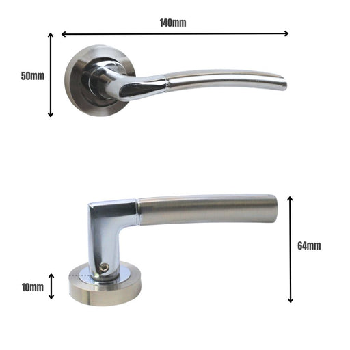 The IOS Lever on Rose Push Button Privacy Handle Satin/Polished Chrome is a modern and practical solution for internal doors. Featuring a stylish d...