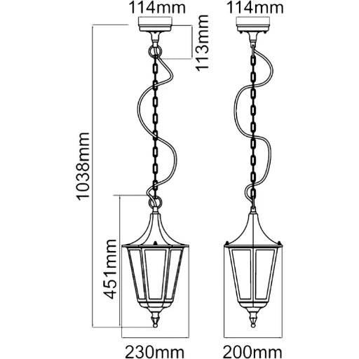 The Coria Grande 6-Sided Hanging Lantern E27 75W Black is a beautifully designed lighting fixture perfect for adding a classic touch to both domest...