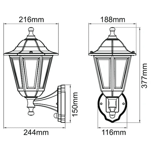 Original price £20.99 - Original price £20.99Original price£20.99£20.99 - £20.99Current price £20.99Lantern Wall E27 IP44 60W Black Polycarbonate NO Lamp