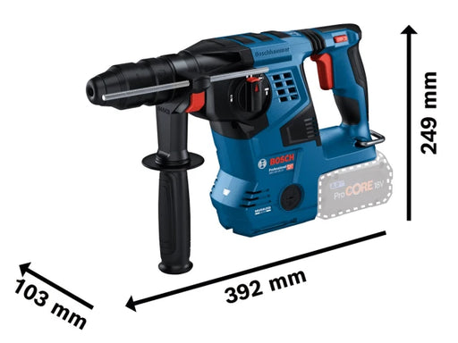 The Bosch GBH 18V-28 CF Pro BITURBO SDS-Plus Rotary Hammer 18V Bare Unit delivers exceptional cordless performance with power comparable to corded ...