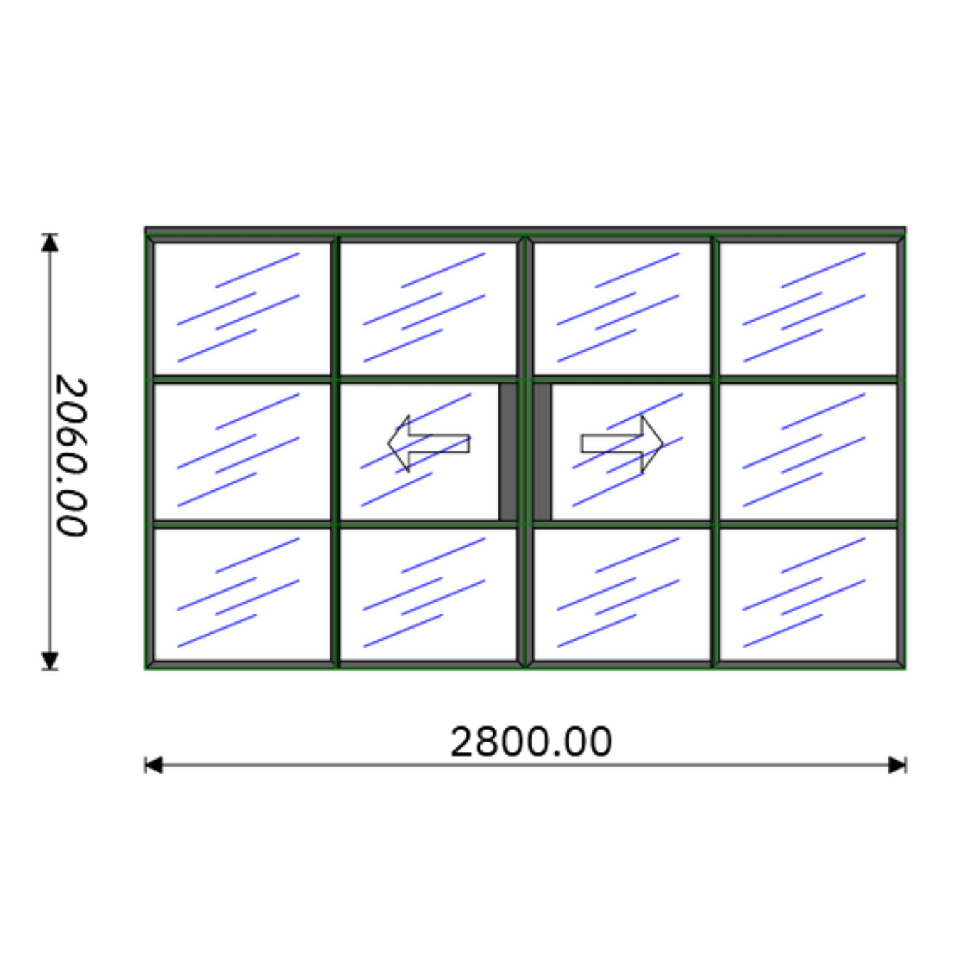 Technical details: System: Heritage System Group: Double Door with two side flags - Black (RAL9005) Brickwork Opening: W4005mm x H2100mm Overall...