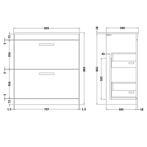 Original price £95.20 - Original price £287.47Original price£95.20£95.20 - £287.47Current price £95.20Arno 800mm Floor Standing 2-Drawer Vanity or Mid-Edge Basin