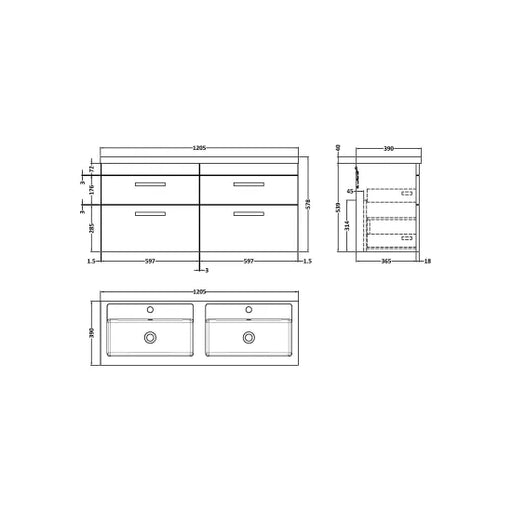 Original price £142.99 - Original price £464.43Original price£142.99 - £464.43£142.99 - £464.43Current price £142.99Athena Wall Hung 4 Drawer Vanity With Twin Basin 1200mm