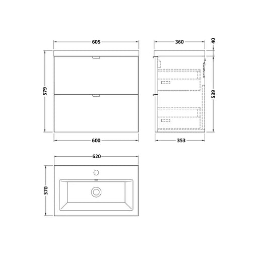 Original price £82.51 - Original price £400.21Original price£82.51 - £400.21£82.51 - £400.21Current price £82.51Fusion Wall Hung 2 Drawer Vanity Unit or Ceramic Basin 600mm