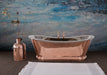 * Hand crafted copper freestanding double ended boat bath with a nickel inner and antique copper outer finish. Supplied without tap holes and overflow.