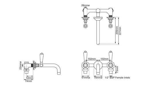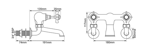 Original price £411.13 - Original price £618.13Original price£411.13 - £618.13£411.13 - £618.13Current price £411.13Hurlingham Crosshead 2-Hole Wall-Mounted Bath Filler Taps 200 x 117mm