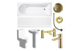 Enhance your bathroom with the sophisticated Laurentine Full Suite & Bath w/Brushed Brass Finishes. This contemporary bathroom set combines timeless ceramic pieces with elegant brushed brass fittings for a striking look. The suite includes a full pedestal basin, close coupled WC with soft close seat, and a spacious 1700mm straight bath. Complemented with brushed brass taps, bath filler, waste, overflow ring, and dual push button cover, this suite delivers a seamless finish with on-trend style. Built for long-term durability, it comes with a lifetime guarantee on ceramics, a 20-year guarantee on the bath, and 3–5 years on tap components and finish.