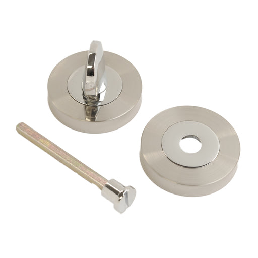 Add a contemporary finishing touch to your bathroom doors with the Bathroom Turn Escutcheon Chrome/Satin Chrome. Featuring a stylish dual-finish de...