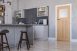 Crafted from North American white oak with crown cut veneer, this door is supplied unfinished, giving you the freedom to paint or stain it to suit your interior. The frosted toughened glass panel softly diffuses light while maintaining privacy, making it an ideal choice for home offices, bathrooms, and other private spaces. Built with a solid core for strength and sound insulation, it’s suitable for both residential and light commercial environments and reflects the quality craftsmanship expected from Deanta Doors.