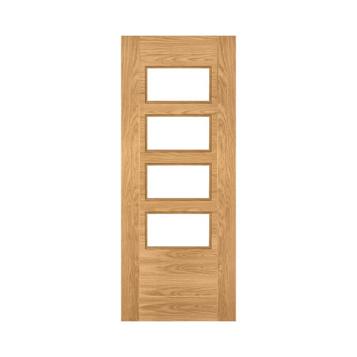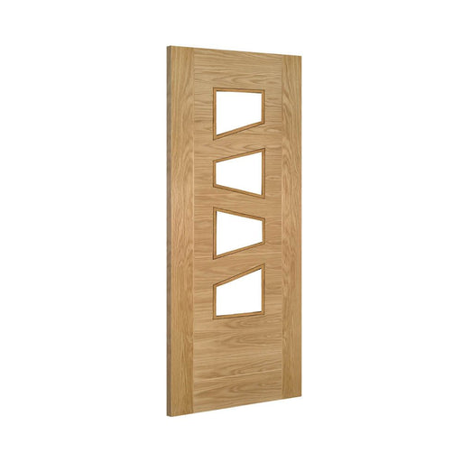 The Deanta Seville Prefinished Oak Glazed 4 Lite Slanted Door is a striking contemporary internal door designed to maximise light while delivering ...