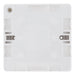 Features include covers that conceal fixing screws, multiple knockouts, and an earth terminal fitted as standard. The spacers included provide greater clearance for wiring in shallow mounting boxes, ensuring a professional and efficient installation.