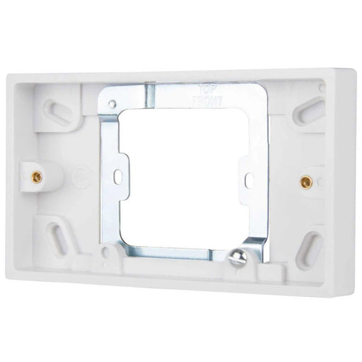 The BG Dual Surface Pattress with square edge is designed to provide extra clearance for wiring when shallow mounting boxes are used, making it a g...