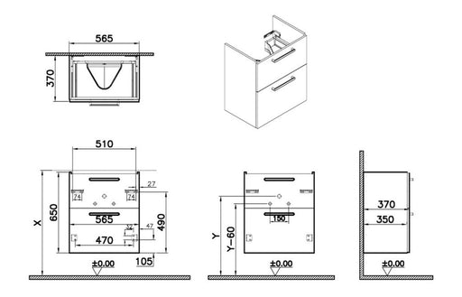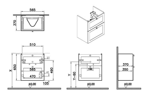 Bring modern elegance and practical storage to your bathroom with the VitrA Root Flat 80cm 2 Drawer Washbasin Unit in Cordoba. This wall-hung unit ...