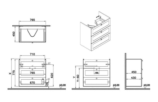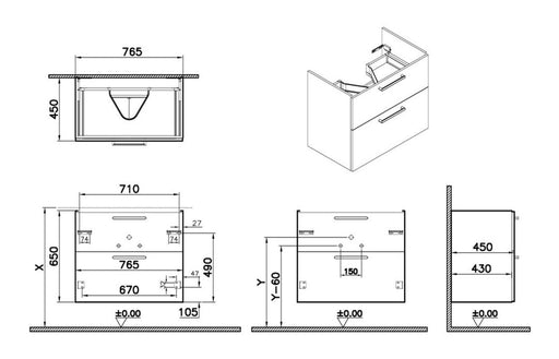 Add style and practicality to your bathroom with the VitrA Root Classic 80cm 2 Drawer Washbasin Unit in Matt Graphite. Designed with a balance of s...
