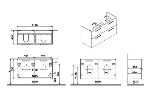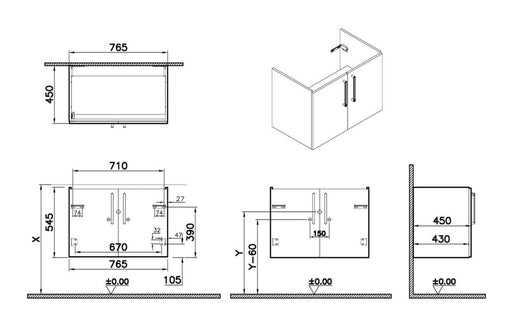 Original price £137.36 - Original price £137.36Original price£137.36£137.36 - £137.36Current price £137.36VitrA Root Flat 60cm 2 Door Wall Hung Slim Washbasin Unit - Cordoba