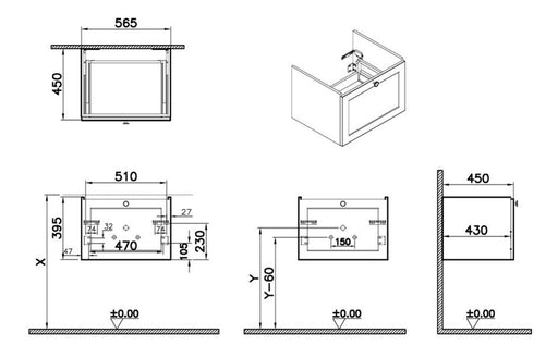 Enhance your bathroom with the VitrA Root Flat 60cm 1 Drawer Washbasin Unit in Cordoba. Compact yet stylish, this wall-hung unit provides practical...