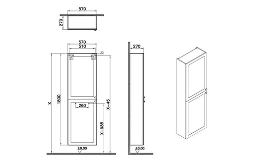 Make the most of your bathroom space with the VitrA Root Classic 55cm 2 Door Slim Tall Unit (Left-Hand Hinge) in Matt Graphite. Designed with a sli...