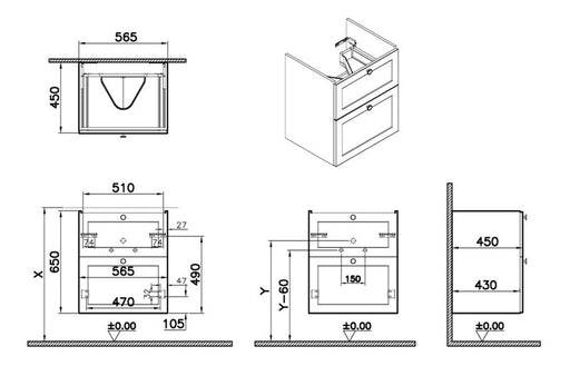 Original price £249.23 - Original price £249.23Original price£249.23£249.23 - £249.23Current price £249.23VitrA Root Classic 60cm 2 Drawer Slim Washbasin Unit - Matt Graphite
