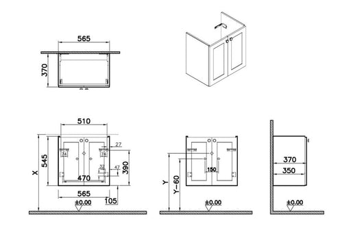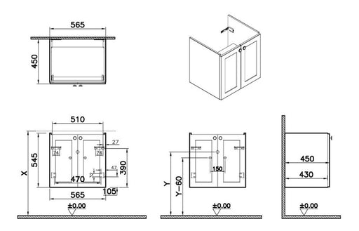 Maximise your bathroom space with the VitrA Root Classic 60cm 2 Door Wall Hung Slim Washbasin Unit in Matt Graphite. Designed with a slim, compact ...