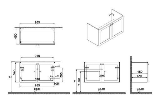 Create a sleek and practical bathroom setup with the VitrA Root Classic 60cm 2 Door Wall Hung Washbasin Unit in Matt Dark Blue. Compact yet stylish...