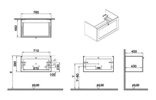 Original price £249.23 - Original price £249.23Original price£249.23£249.23 - £249.23Current price £249.23VitrA Root Classic 80cm 1 Drawer Washbasin Unit - Matt Dark Blue