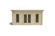 The Elmley Log Cabin is a mid-sized model with a 5m x 3m footprint and contemporary pent roof. It offers 137 square feet of internal space, ideal for various uses such as a home office, lounge, hobby room, or gym.