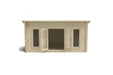 The Elmley Log Cabin is a mid-sized garden building with a 5m x 3m footprint and a modern pent roof design, offering a versatile space for various uses such as a home office, hobby room, gym, or lounge.