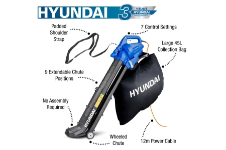 The Hyundai HYBV3000E is a powerful, lightweight, and versatile 3-in-1 electric tool designed to make garden maintenance easy. Whether you're clear...