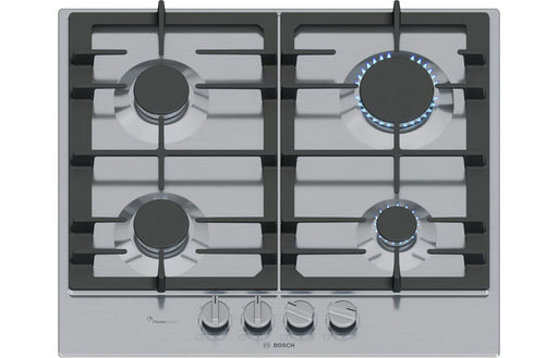 Cook with confidence and precision using the Bosch Series 6 PCP6A5I90 60cm Gas Hob in sleek stainless steel. This built-in Bosch gas hob combines p...