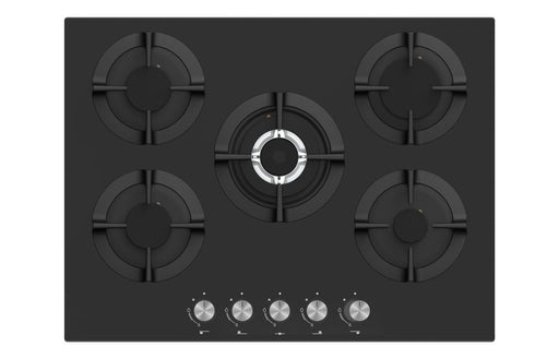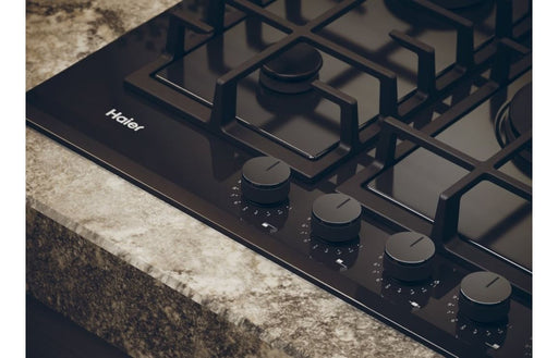 Cook with precision, power, and style using the Haier HAVG75TBBP 75cm Gas on Glass Hob in elegant black glass. This premium built-in gas hob combin...