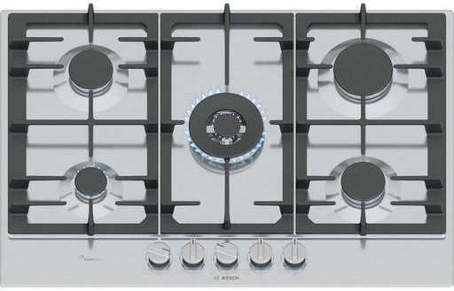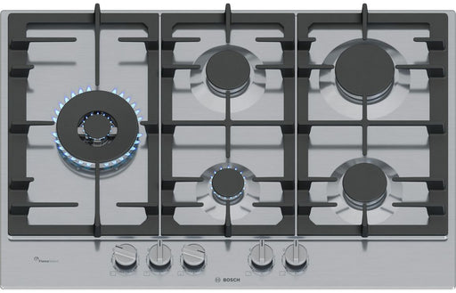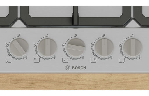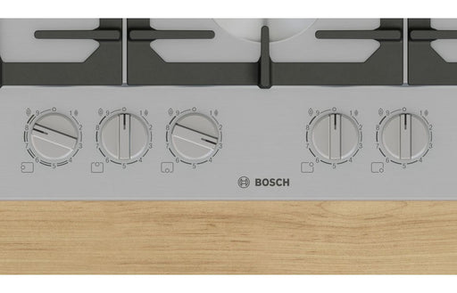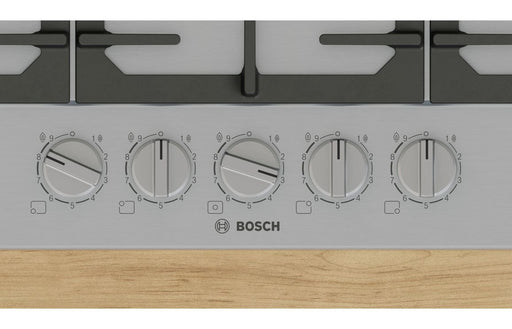 Experience professional-grade cooking performance with the Bosch Series 6 PCQ7A5I90 75cm Gas Hob in sleek stainless steel. This built-in Bosch hob ...