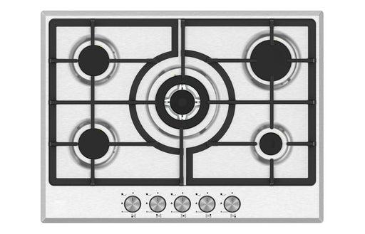Cook with confidence and style using the Prima PRGH118 70cm Gas Hob (Cast Iron) in sleek stainless steel. This built-in gas hob features five power...
