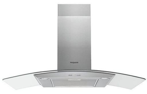Upgrade your kitchen with the Hotpoint PHGC9.4FLMX 90cm Curved Glass Chimney Hood in sleek stainless steel. Designed for style and performance, thi...