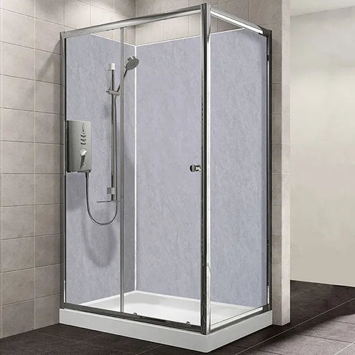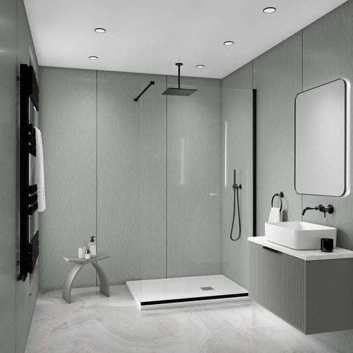 Upgrade your bathroom or wet room with Decorwall Maxi Panel – Gloss Fusion Light Grey – 2400mm x 900mm x 10mm, a sleek and modern alternative to tr...