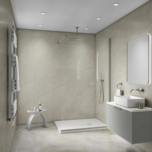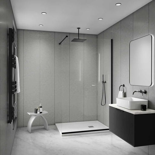 Enhance your interiors with the modern elegance of the Decorwall Elegance Mineral Quarried Grey wall panel. A stylish and hygienic alternative to c...