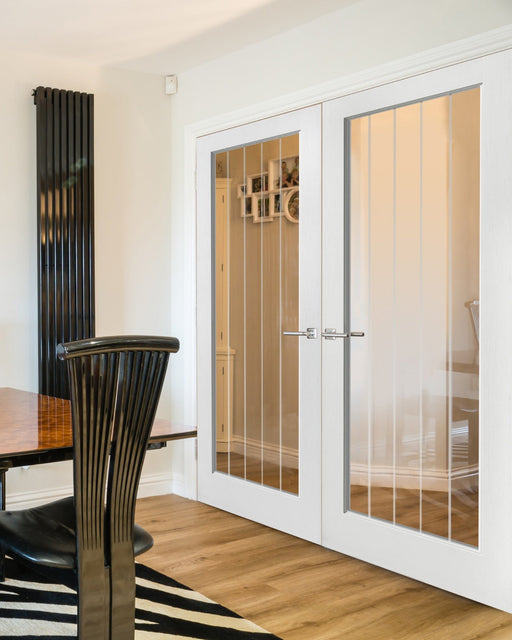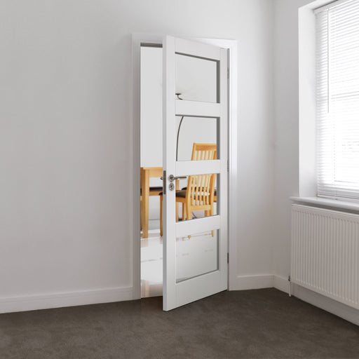 View full detailsClassic white primed moulded panel interior door with grained effect and etched glassColour: WhiteFinish A: PrimedFinish B: NoneFire Door: NoCertif...