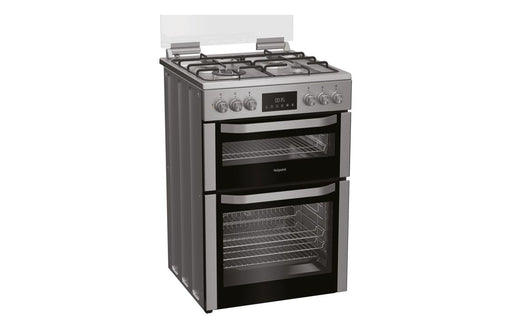 The Hotpoint HDD6GDC2WX Dual Fuel Cooker in stainless steel combines the precision of a gas hob with the efficiency of electric ovens, giving you t...