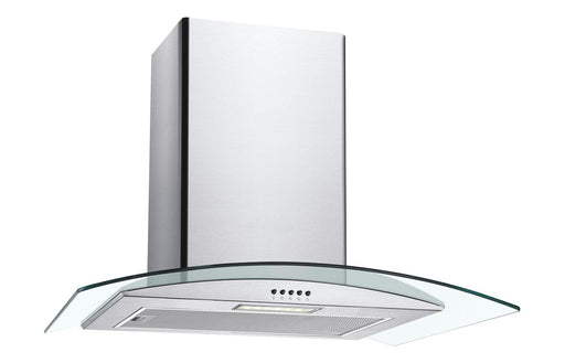 The Unbranded CGM90NX/1 90cm Curved Glass Chimney Hood in stainless steel and glass delivers powerful extraction and modern elegance at an exceptio...