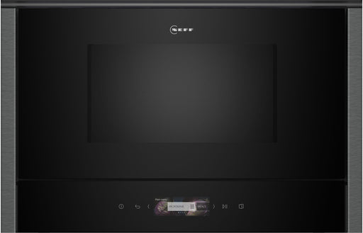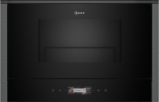 The Neff N70 NL4WR21G1B Built-In Microwave in stunning black with graphite grey trim combines sleek design, smart technology, and everyday practica...