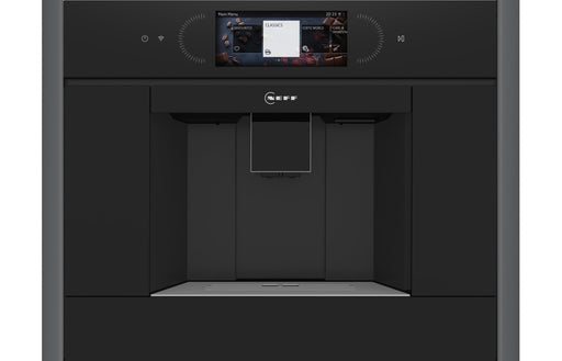 Elevate your coffee experience with the Neff N90 CL4TT11G0 Built-In Fully Automatic Coffee Machine in sleek black with a graphite grey trim. With a...