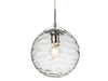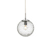 The Mercury Pendant in clear glass features a stunning decorative wave effect, offering a unique and modern look. Enhanced by shiny chrome metalwork and a matching ceiling cup, this pendant light will serve as an elegant focal point in any room.