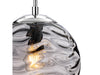 The Mercury Pendant in smoked glass showcases a captivating decorative wave effect, adding a unique and sophisticated touch to any space. Paired with shiny chrome metalwork and a coordinating ceiling cup, this pendant light enhances your décor with elegance and style.