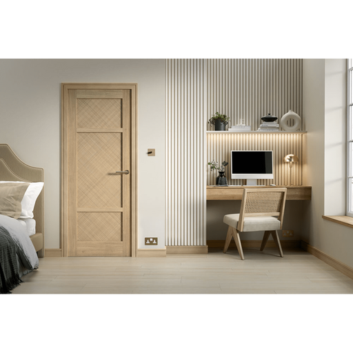The OAK ALVIN internal door brings a touch of natural beauty and bohemian charm to any space. Featuring elegant rattan panels, this door creates a ...