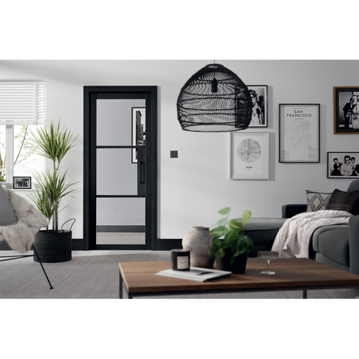 Bring a bold, urban edge to your interiors with the Black Tribeca Glazed 3L internal door. Inspired by industrial-style design, this door features ...