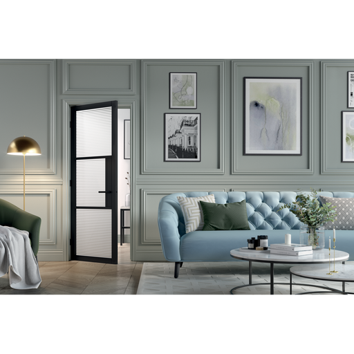 Bring a bold, urban edge to your interiors with the Black Tribeca Glazed 3L Reeded internal door. Inspired by industrial-style design, this door fe...