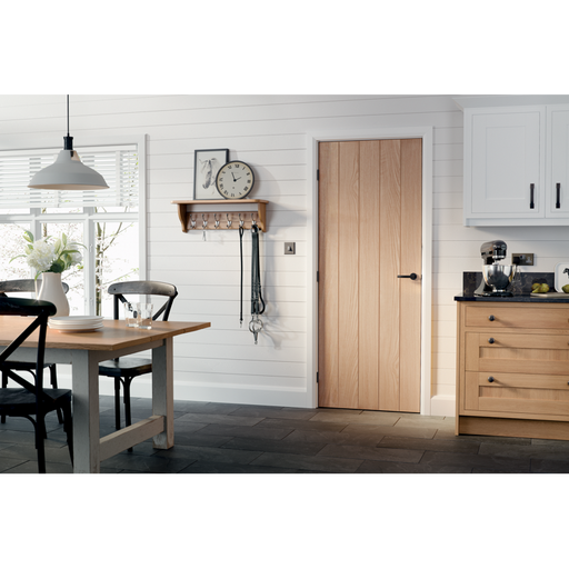 Bring timeless charm and traditional character to your home with the Oak Wexford internal door. Crafted from solid engineered oak, this beautifully...