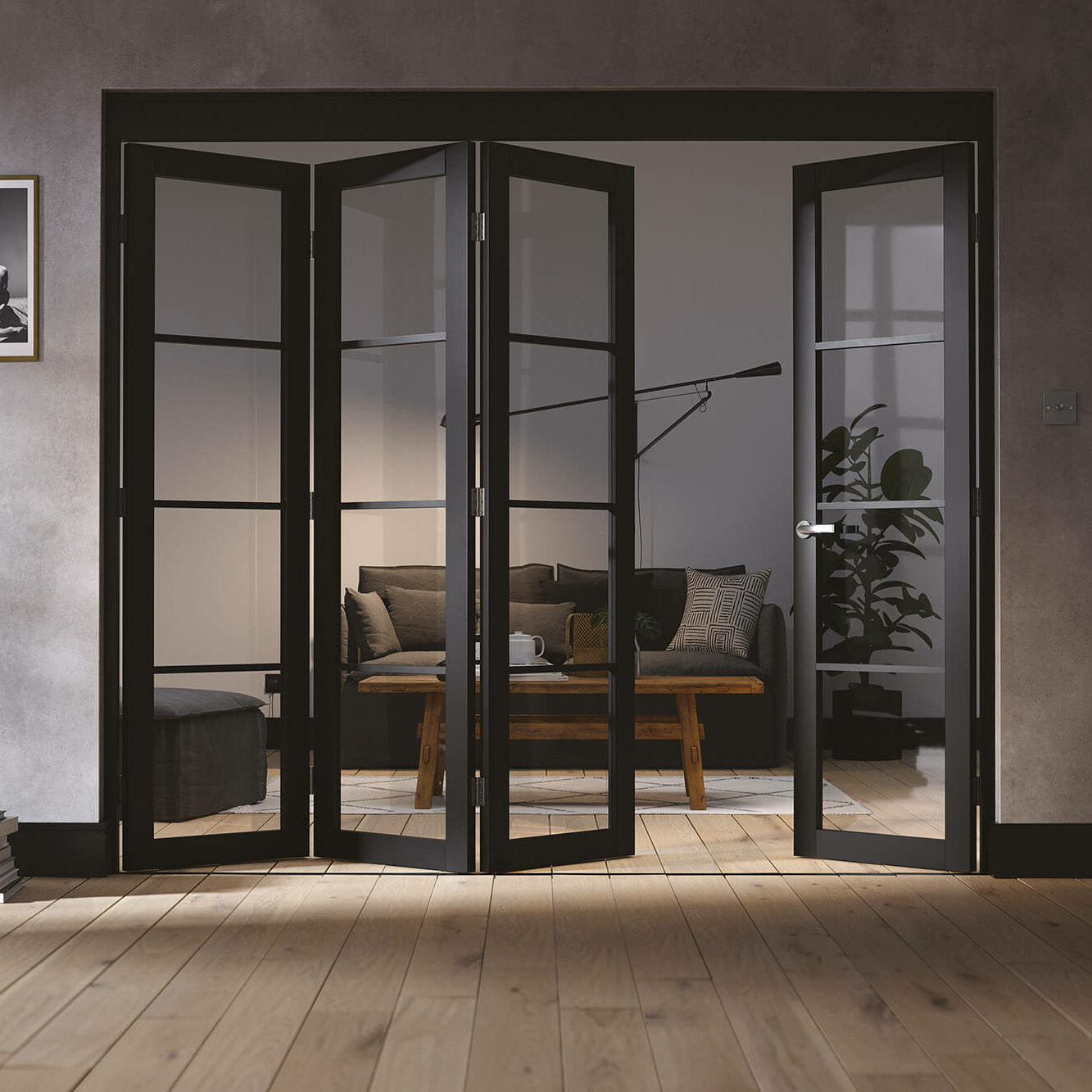 Make a bold statement with the Black Bowery Clear Glazed internal door, designed to bring contemporary elegance and industrial flair to any home. F...