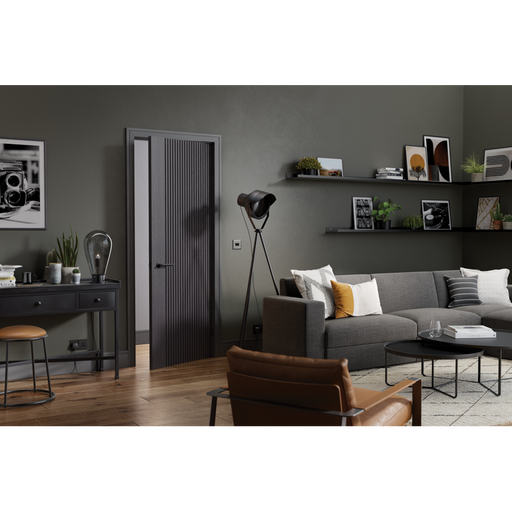 The BLACK SUTTON REEDED GLAZED internal door brings a bold, modern twist to industrial design. Showcasing a distinctive cross reeded glazed center ...